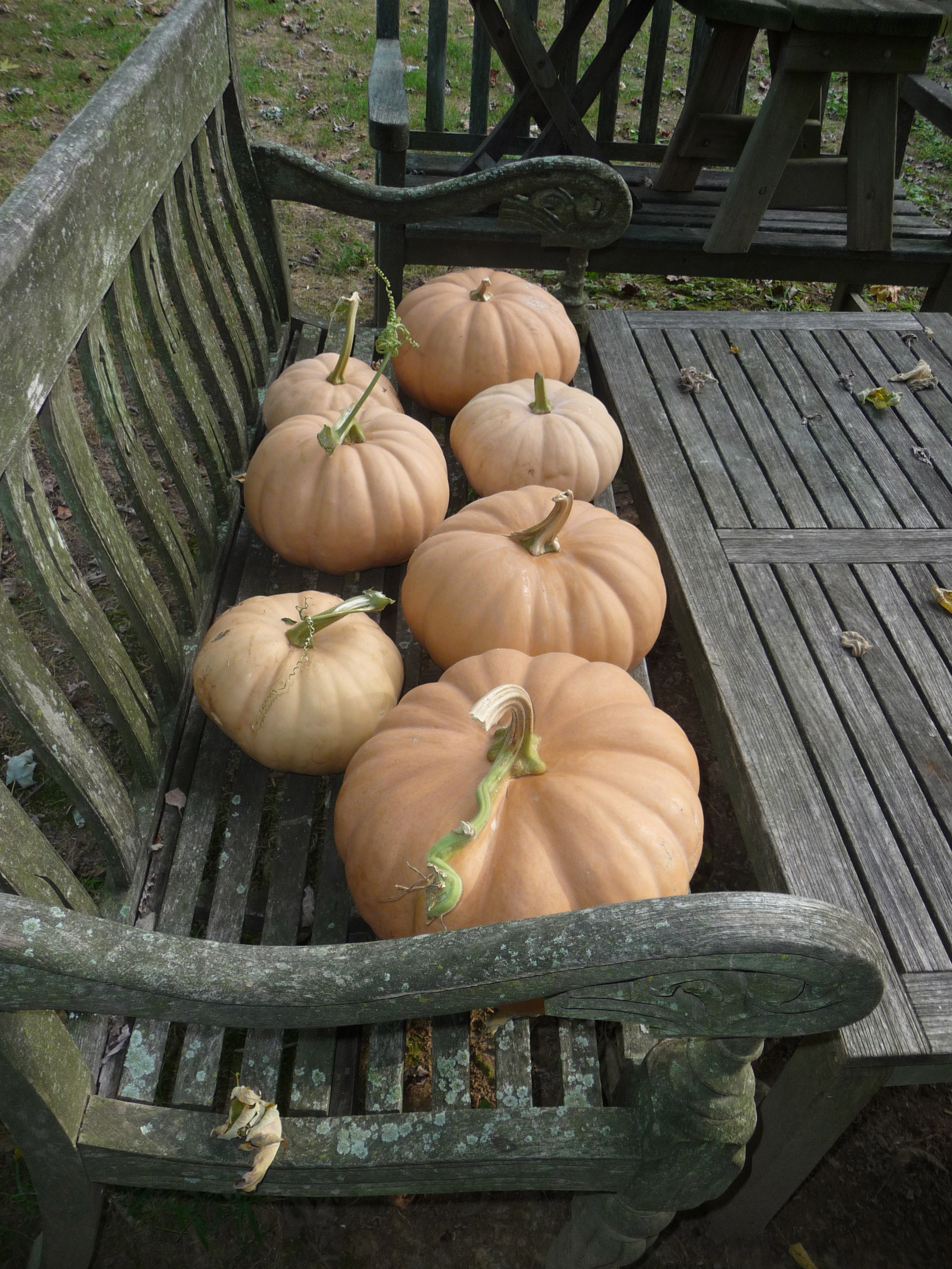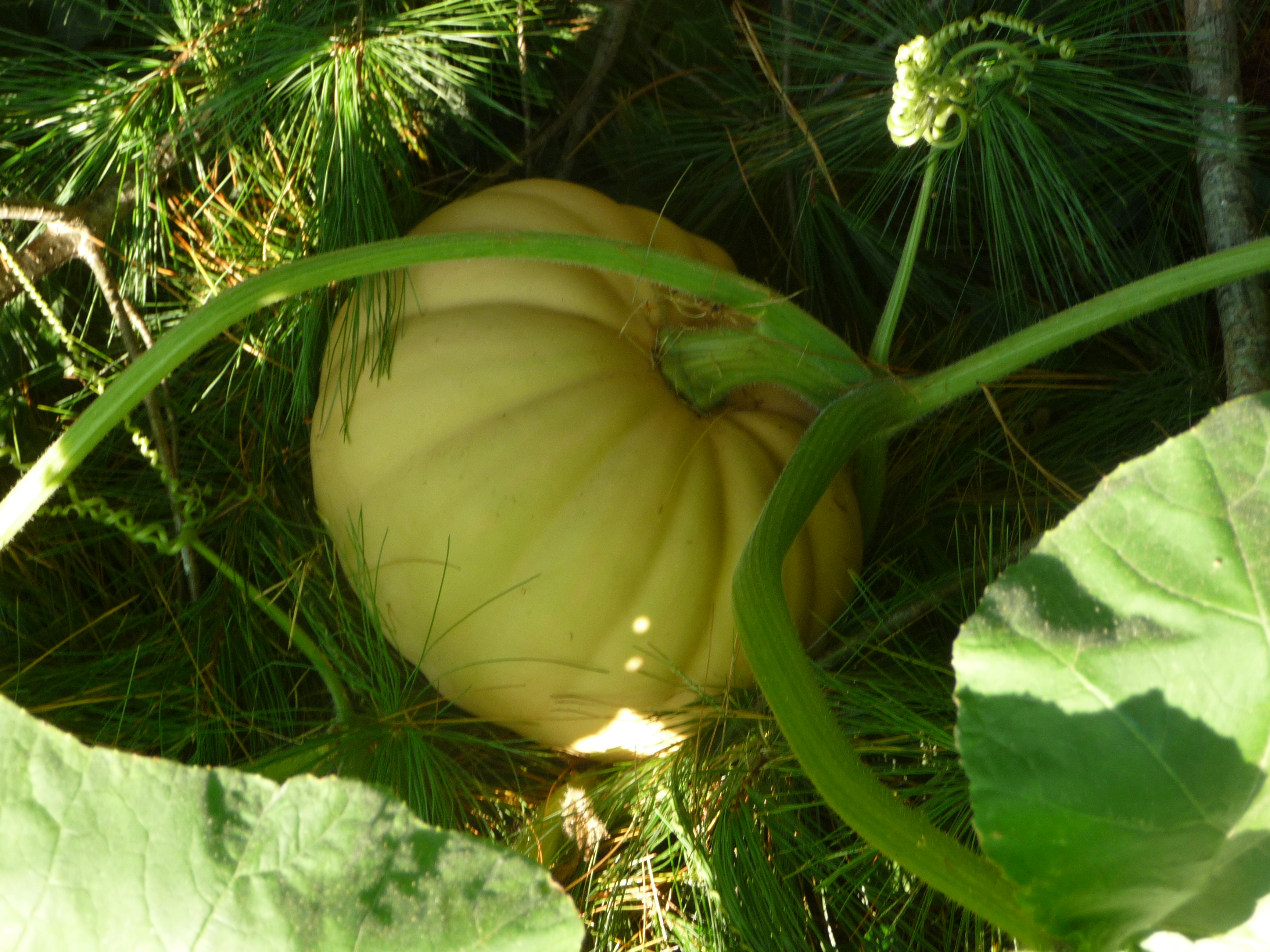 When they finally gave out, we clipped the vines at the ground and laid them behind the cabbages and purple kohlrabi that I had bought at Kingstown Farm Home and Garden. The kohlrabi had been marked ‘red cabbage,’ which appeared to be truth in advertising when it had only a couple of leaves on it. But instead of red cabbage it turned into beautiful purple globes that I turned into slaw and ate with fish tacos. (So much for warm red cabbage salad with garlic, toasted walnuts and feta, but the slaw was lovely).